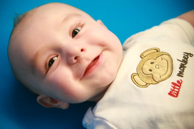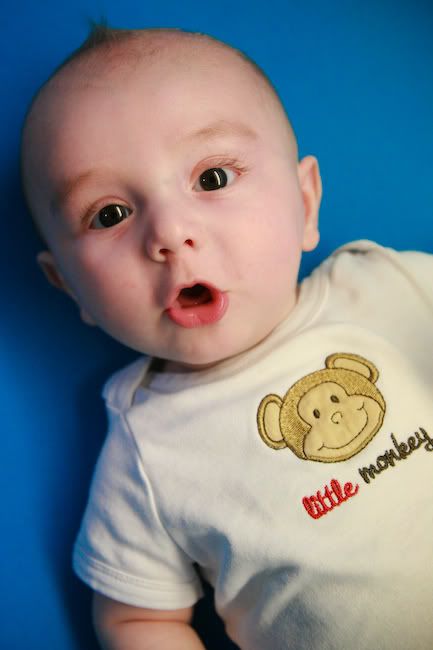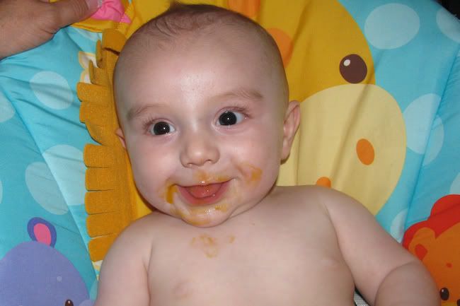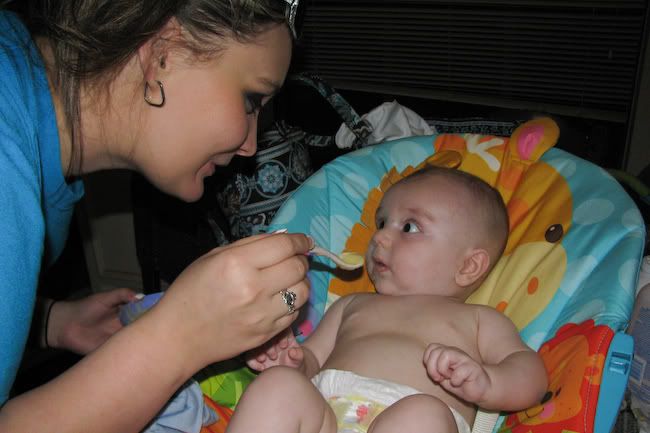 Trying to get him to eat, I like the "you're crazy, Mom" look I'm getting :o)